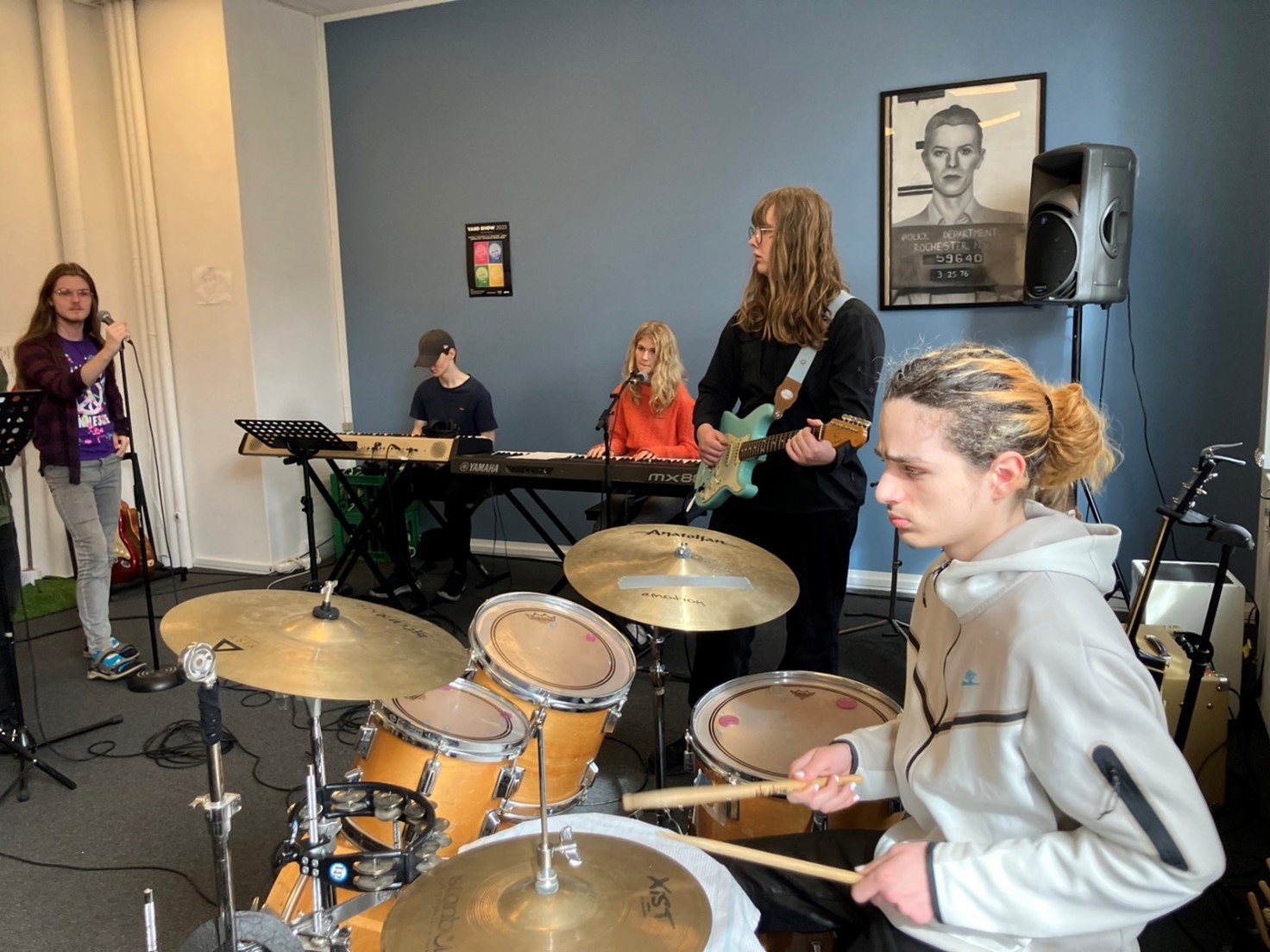Musikklassen består af 12 – 14 elever, hvor du bliver en del af et band. Der er fokus på sammenspil, og du vil få kendskab til de forskellige instrumenter, og mulighed for at prøve forskellige roller. Vi arbejder med teori, hørelære, rytmisk forståelse, musikhistorie og genrekendskab.